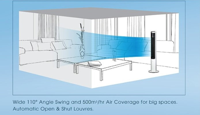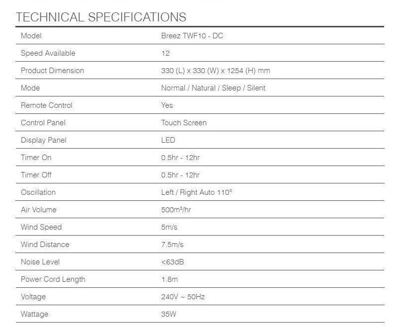Alpha Tower Fan 12 Speed BREEZ TWF10-DC / TWF10DC LED with Remote Control White
