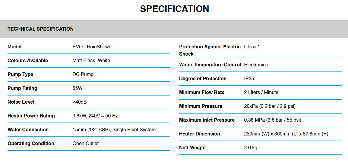 Alpha Water Heater With DC Pump Evo-i Rainshower /Evoi (Ivory White)
