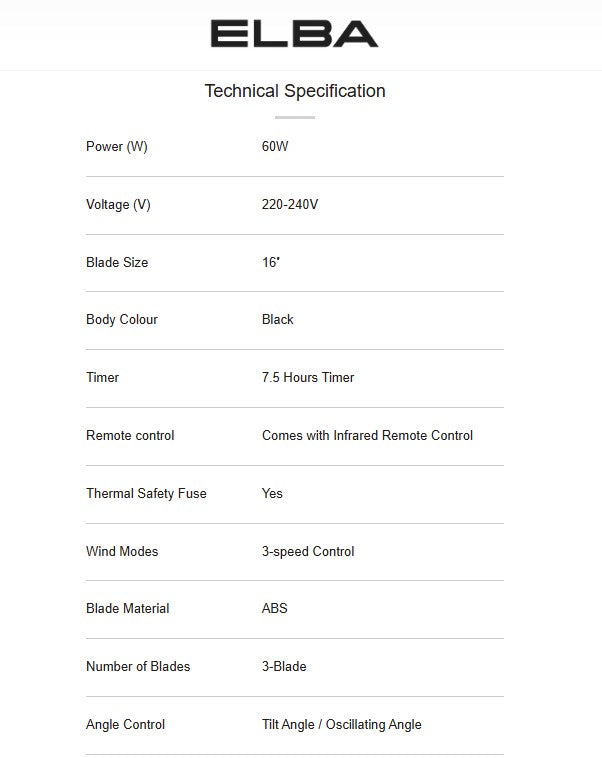 Elba 16'' Remote Control Wall Fan EWMF-E1646RC(BK) / EWMFE1646RCBK