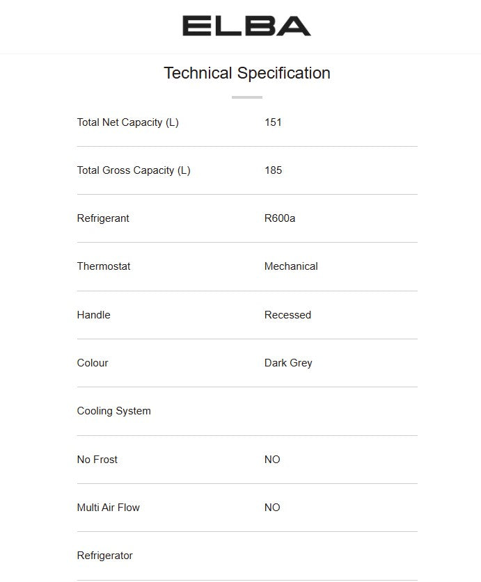ELBA 185L Refrigerator ER-Q1856(GR) / ERQ1856GR (Grey)