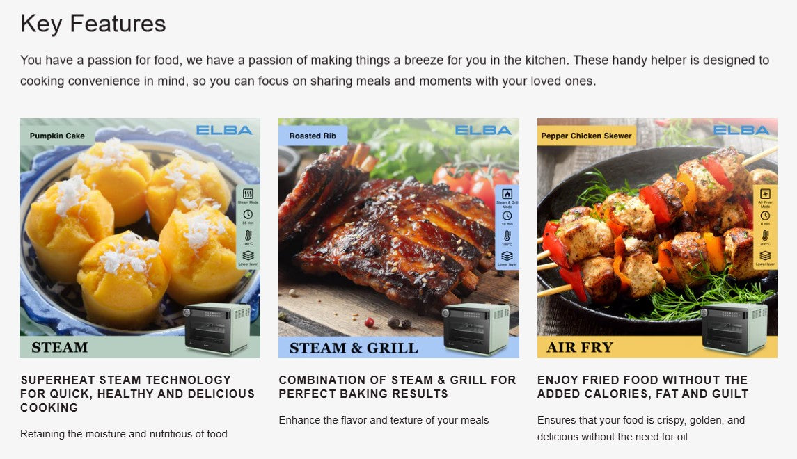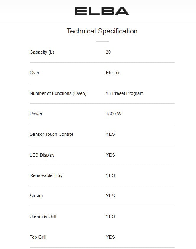 Elba 20L Combi Steam Oven ESGO-N2016SD(MG) / ESGON2016SDMG All in One