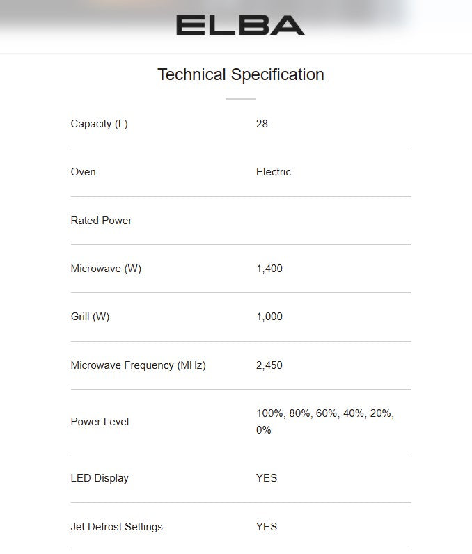 Elba 28L EMO-Q2881BI(BK) Built-in Microwave Oven EMOQ2881BIBK