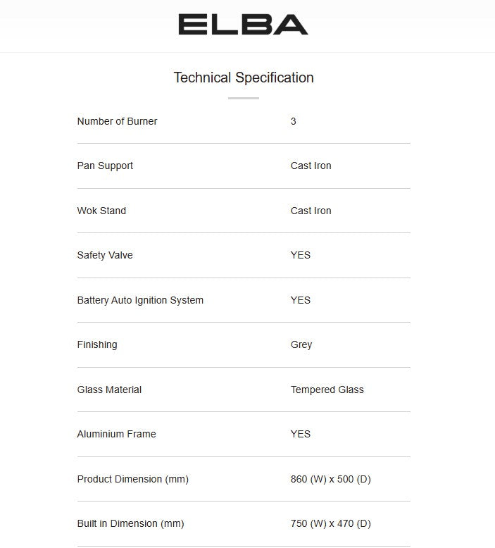 Elba 3 Burners Built-in Glass Hob EGH-E9523G(GR) / EGHE9523GGR