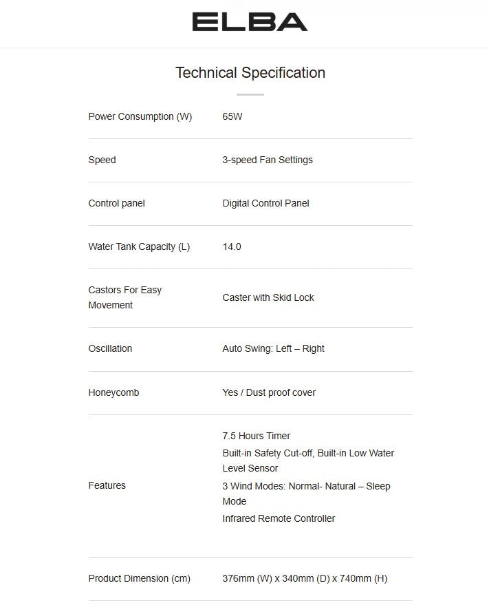 Elba 3 Wind Modes - White (14L) EAC-H6580RC(WH) / EACH6580RCWH