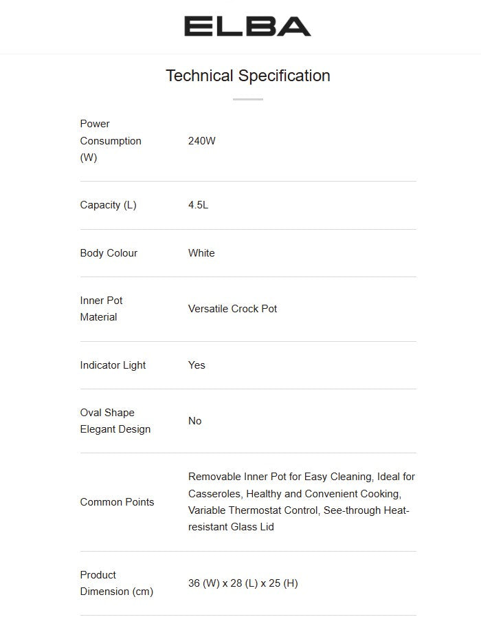 ELBA 4.5L Slow Cooker ESC-K4569(WH) / ESCK4569WH
