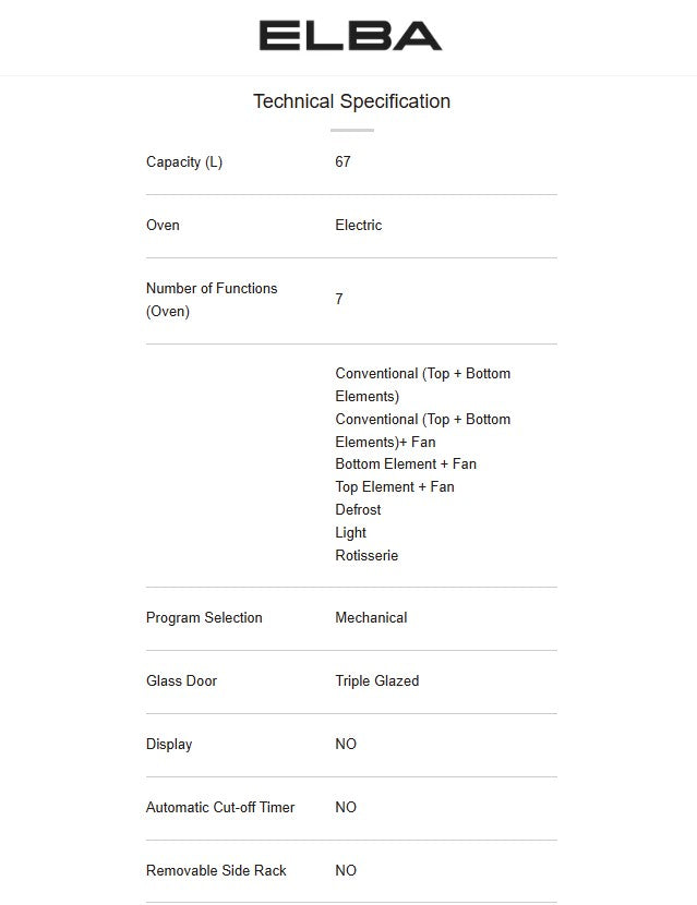 Elba 67L Built-in Oven EBO-N6770(BK) / EBON6770BK