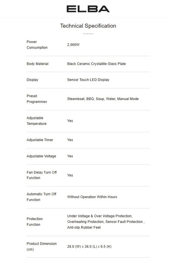 Elba Ceramic Cooker ECC-J2015(BK) LED Display 2000W (Black) ECCJ2015BK