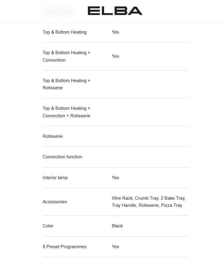 Elba Electric Oven (60L) Digital EEO-J6091D(BK) / EEOJ6091DBK