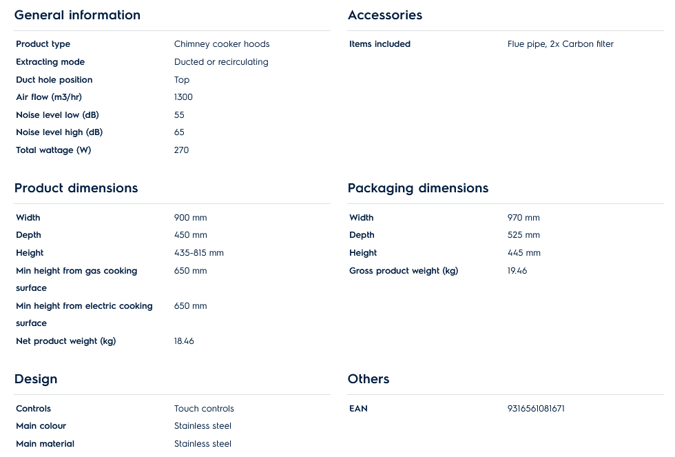 Electrolux ECT9520G 90cm UltimateTaste 500 Chimney Cooker Hood
