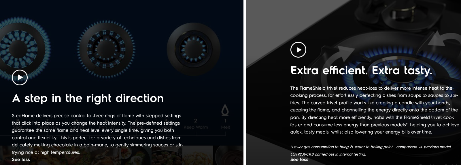 - StepFlame settings deliver precise heat control.
