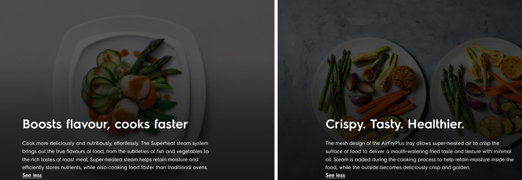 - Superheat steam for fast, more flavourful cooking.