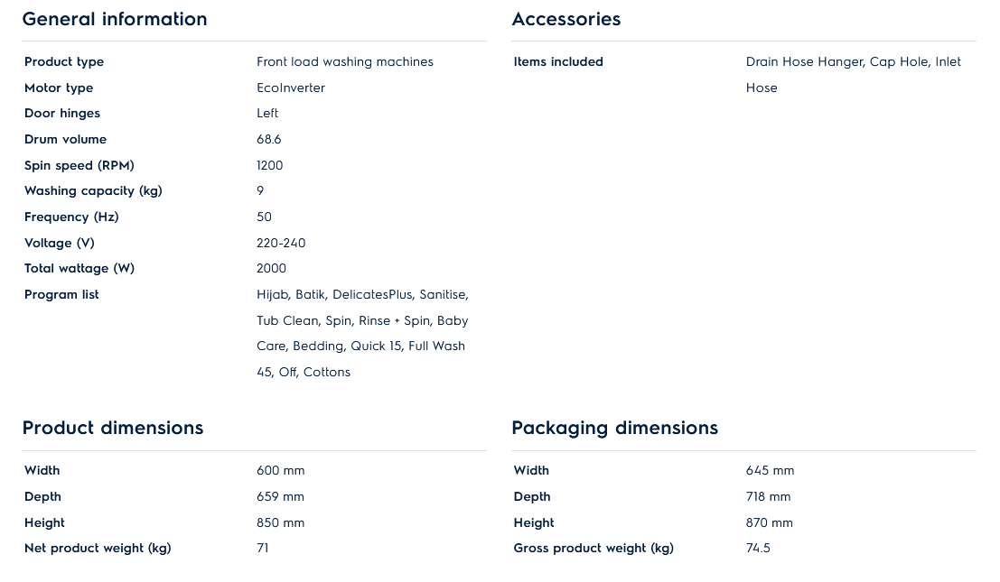 Electrolux EWF9024D3WC 9kg Washer UltimateCare 300 Front Load Washing Machine