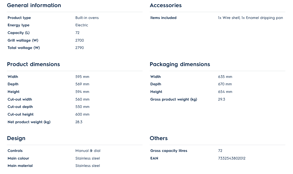 - Different oven functions for diverse cooking.