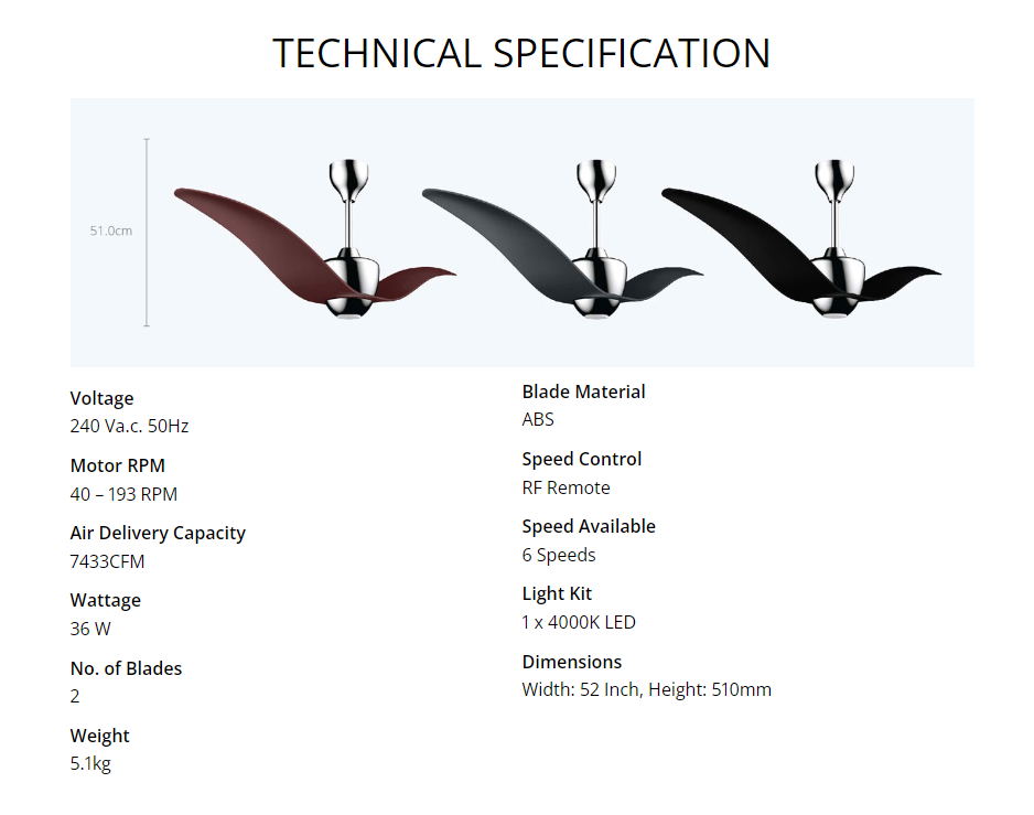 Joven Ceiling Fan JCFDRL2521 / JCFDRL2521MCH DC Inverter Motor Fan With LED Light (Mocha)
