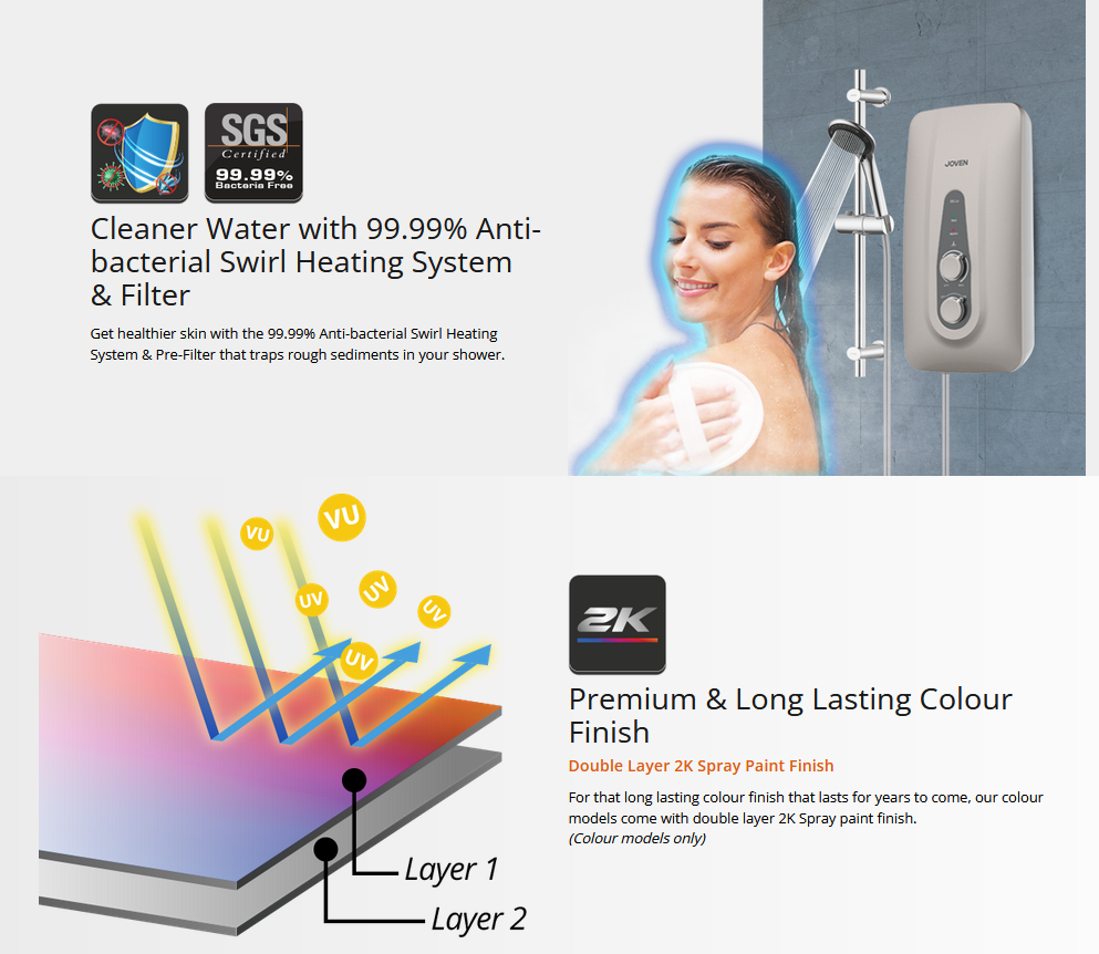 - SGS Certified 99.99% Antibacterial Swirl Heating System