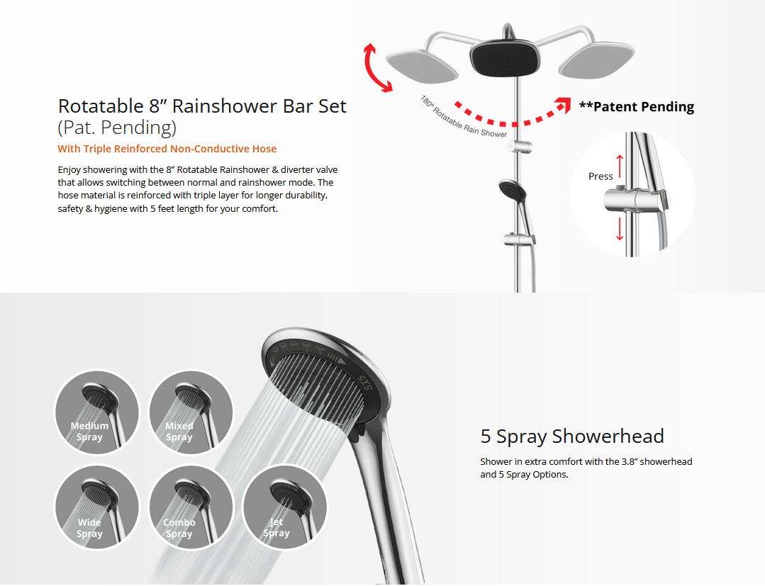 Joven Water Heater SL30E-RS/SL30ERSBK Black Water Heater With Rain Shower (Without Pump)