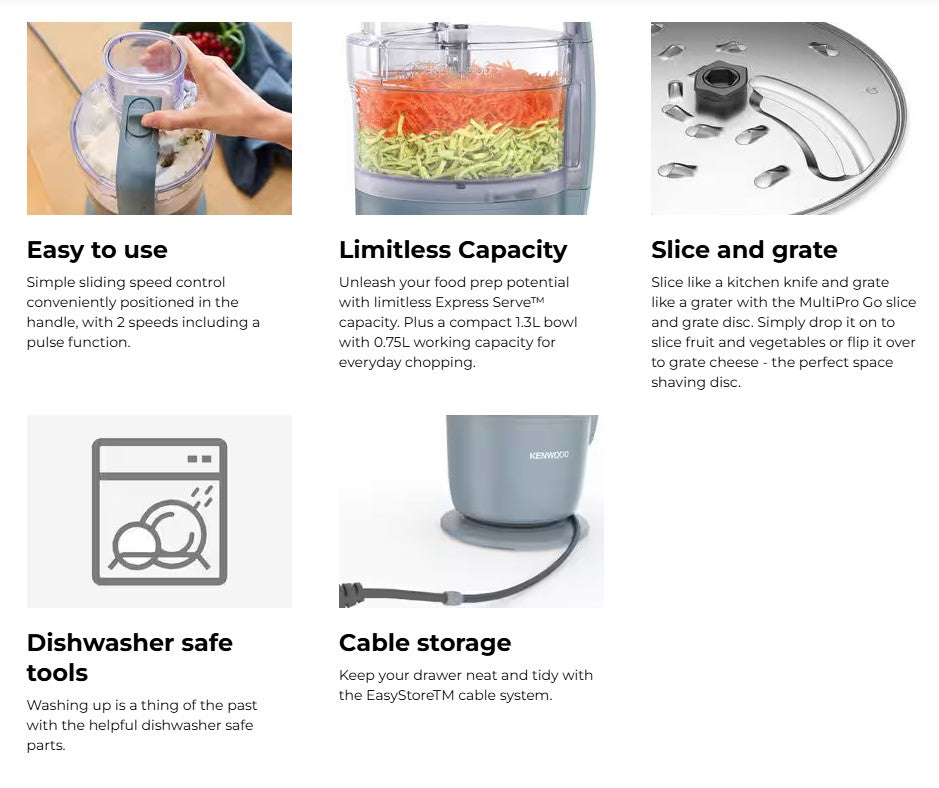 Kenwood 1.3L MultiPro Go FDP22.130GY / Food Processors / Food Preparation FDP22130GY (650W)