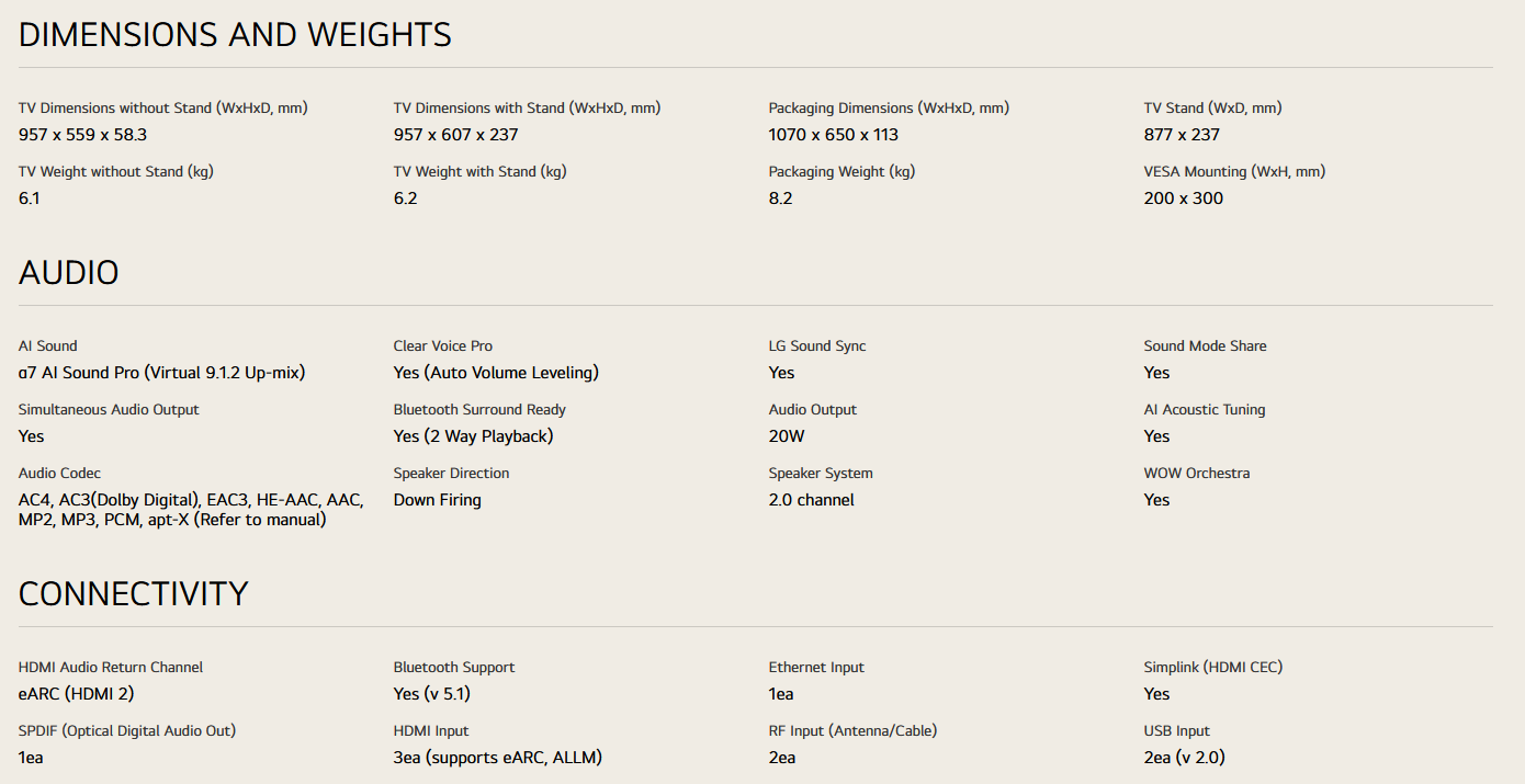 LG 43UA7350PSB 43 Inch LG 4K UHD AI TV UA73 HDR10 (2025)