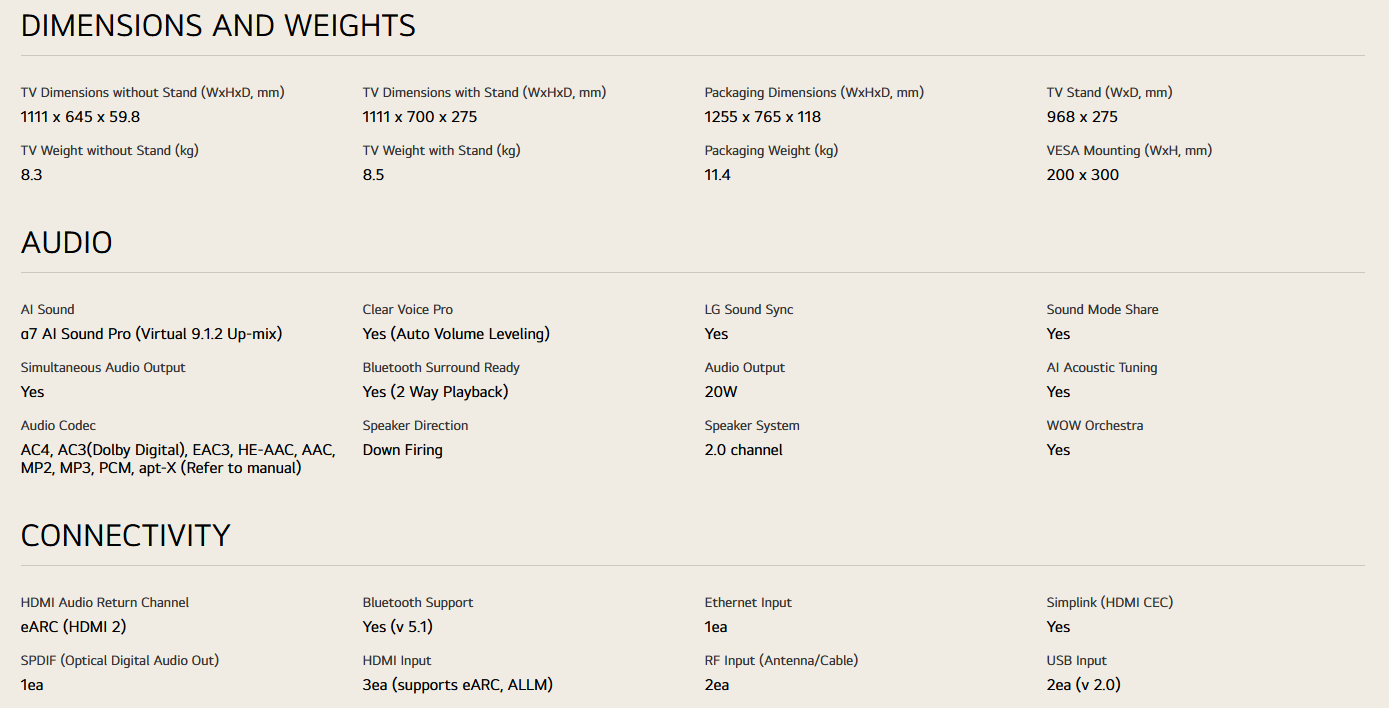 LG 50UA7350PSB 50 Inch LG 4K UHD AI TV UA73 HDR10 (2025)