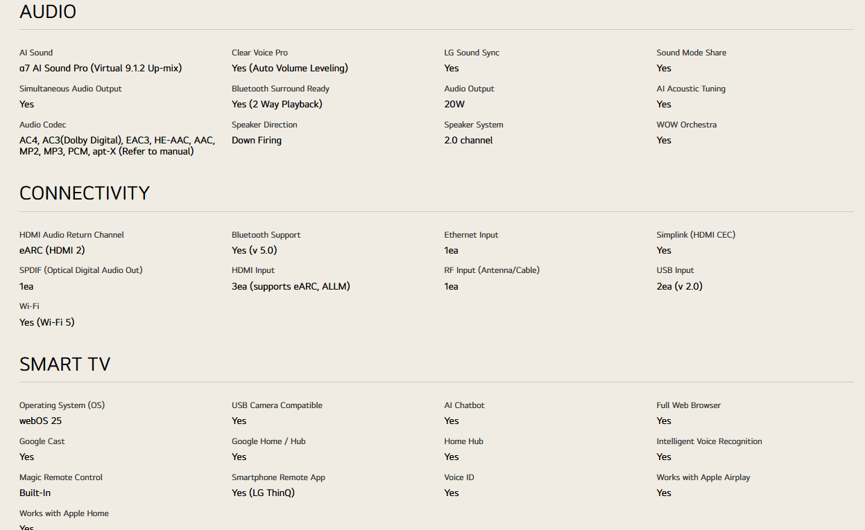 LG 75UA8450PSA 75 Inch LG 4K UHD AI TV UA84 HDR10 (2025)
