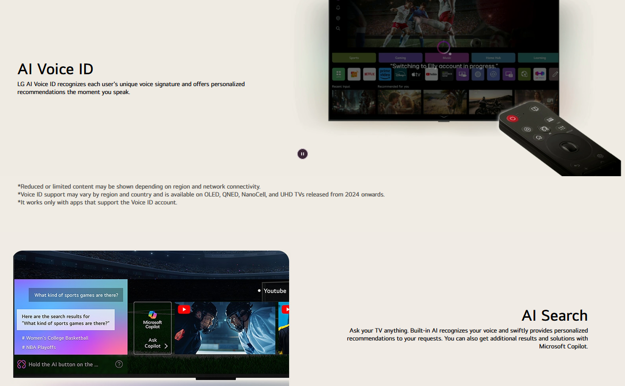 - New AI button, voice controls, drag and drop functions on the AI Magic Remote