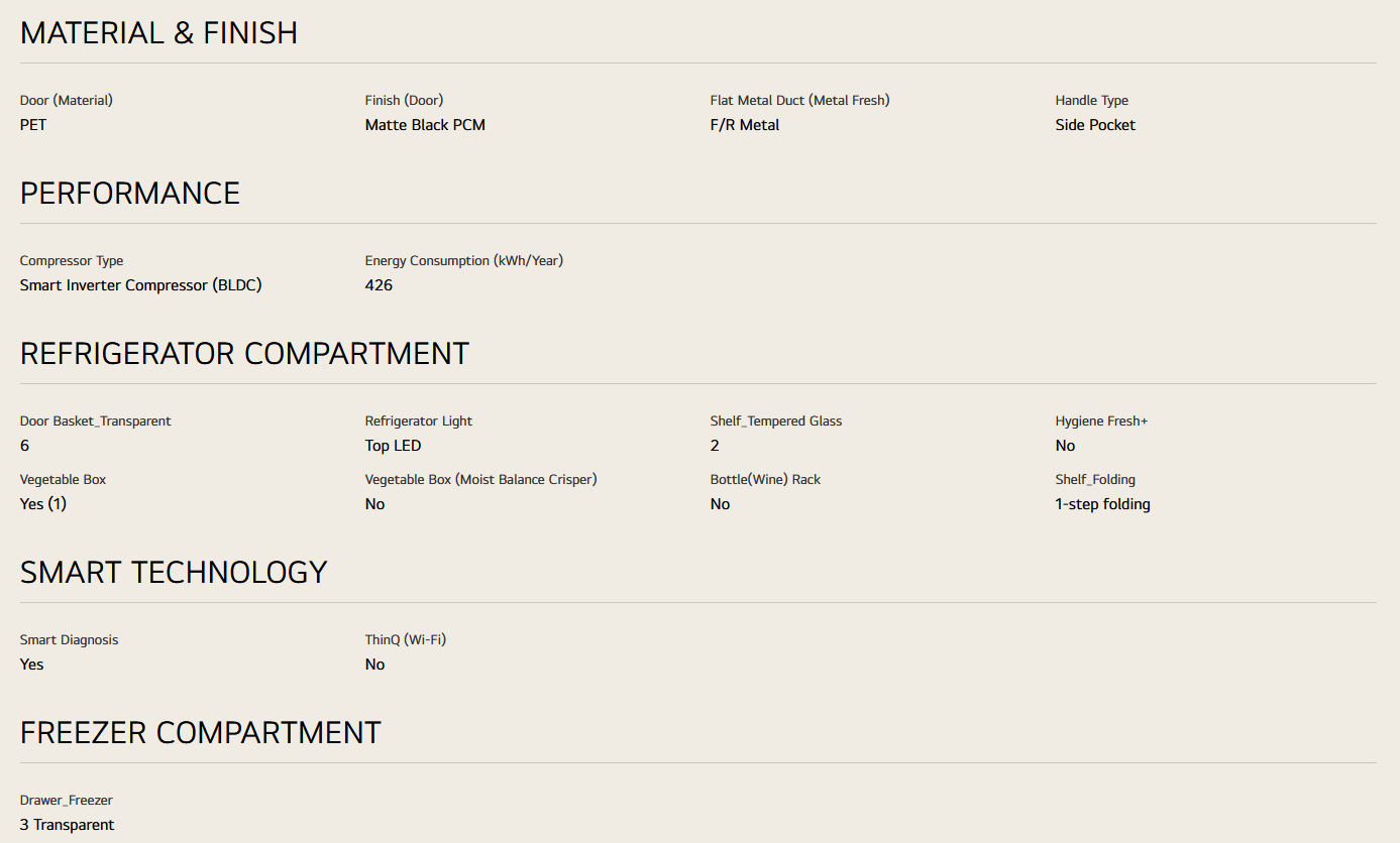 LG GC-B529NQCM 420L 2 Door Bottom Freezer Fridge in Matte Black Finish