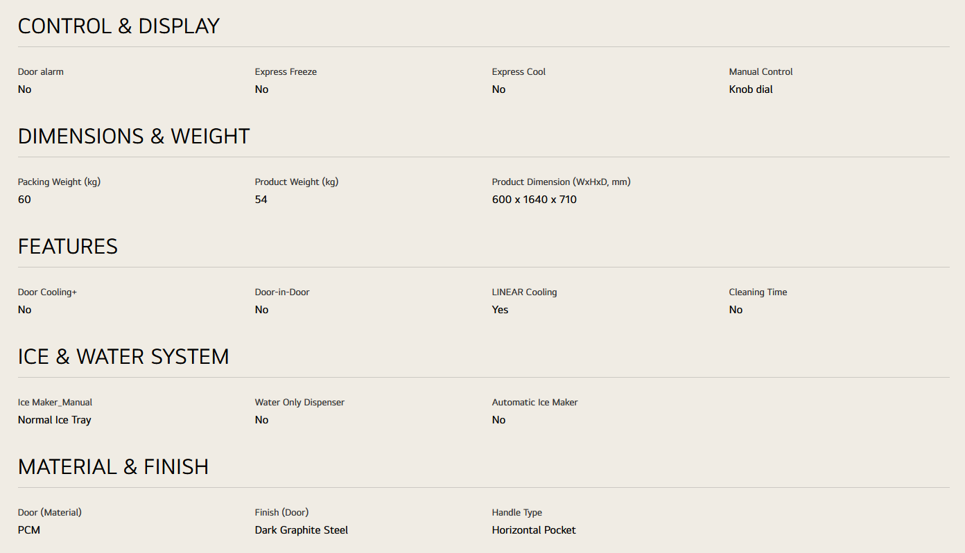 - Product Dimension (WxHxD)(mm): 600 x 1640 x 710