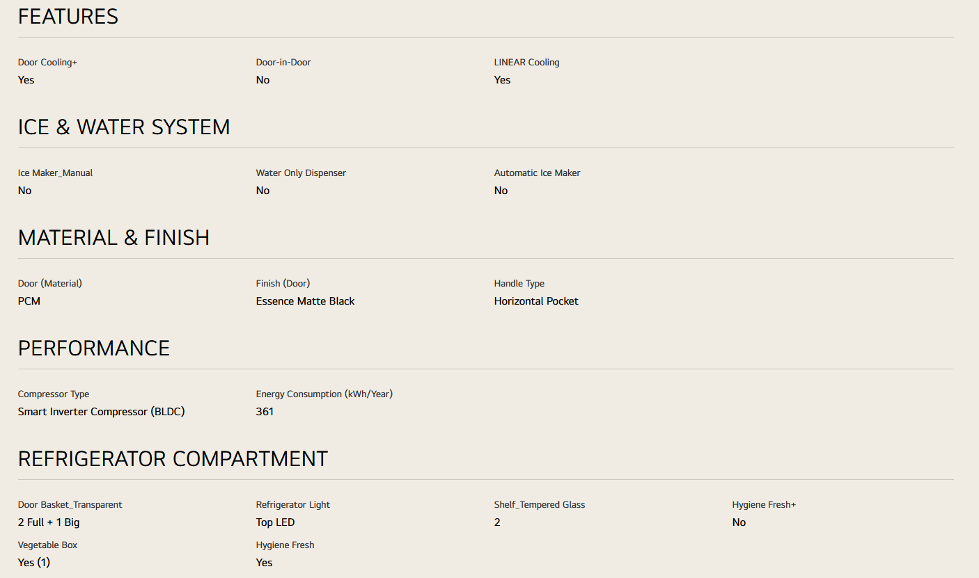 LG GN-B372PQBK 410L 2 Door Top Freezer Fridge in Essence Matt Black