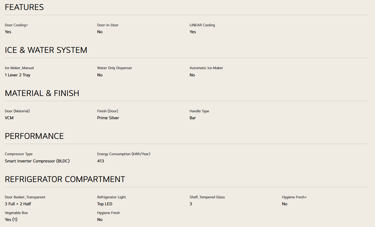 LG GN-C702HFCM 547l 2 Door Top Freezer Fridge in Platinum Silver Finish