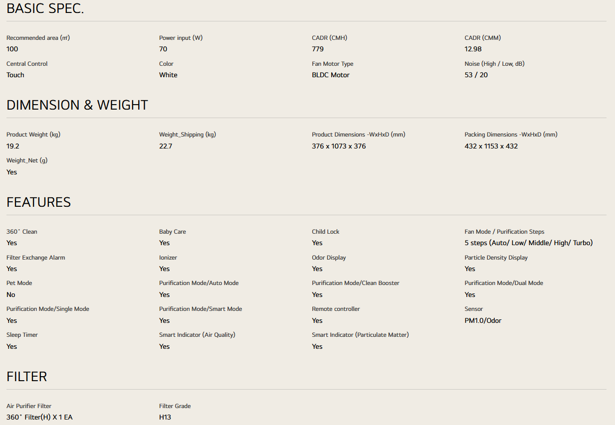 LG PuriCare™ 360º Air Purifier AS10GDWB0/AS10GDWB