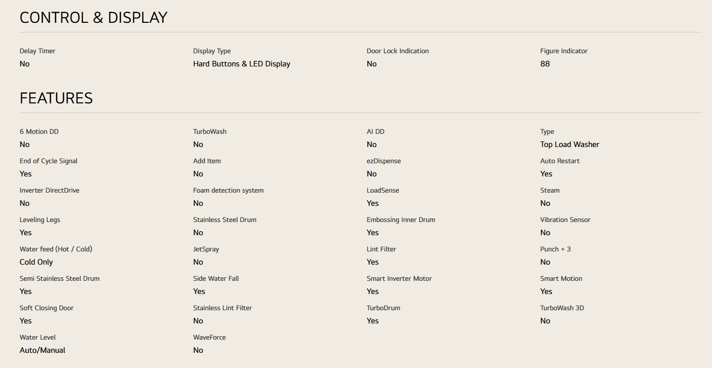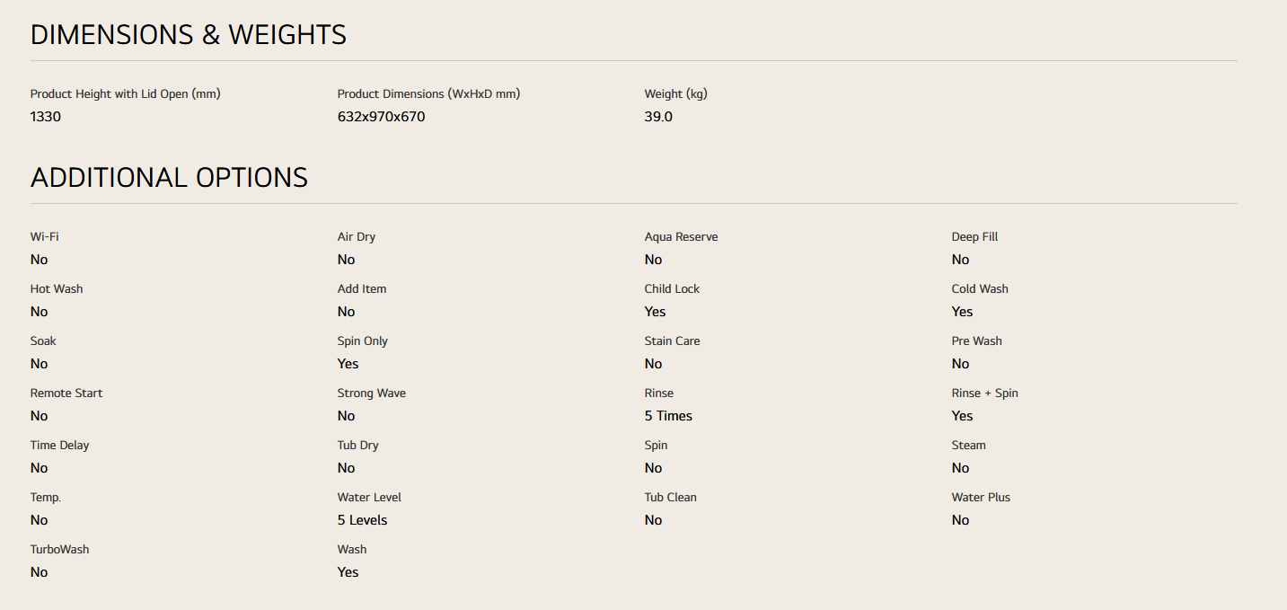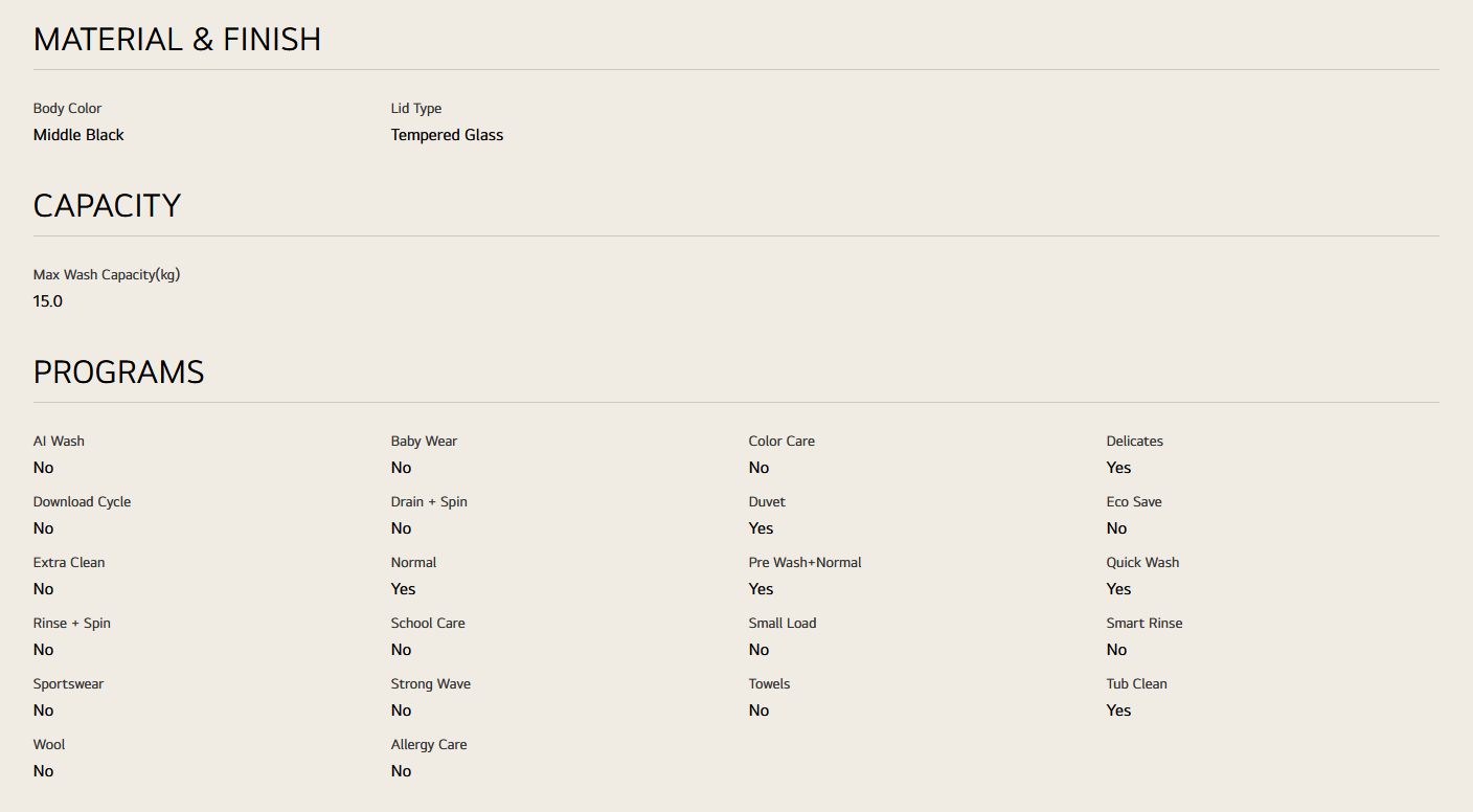LG T2515VBTB 15kg Top Load Washer with Smart Inverter and Turbo Drum