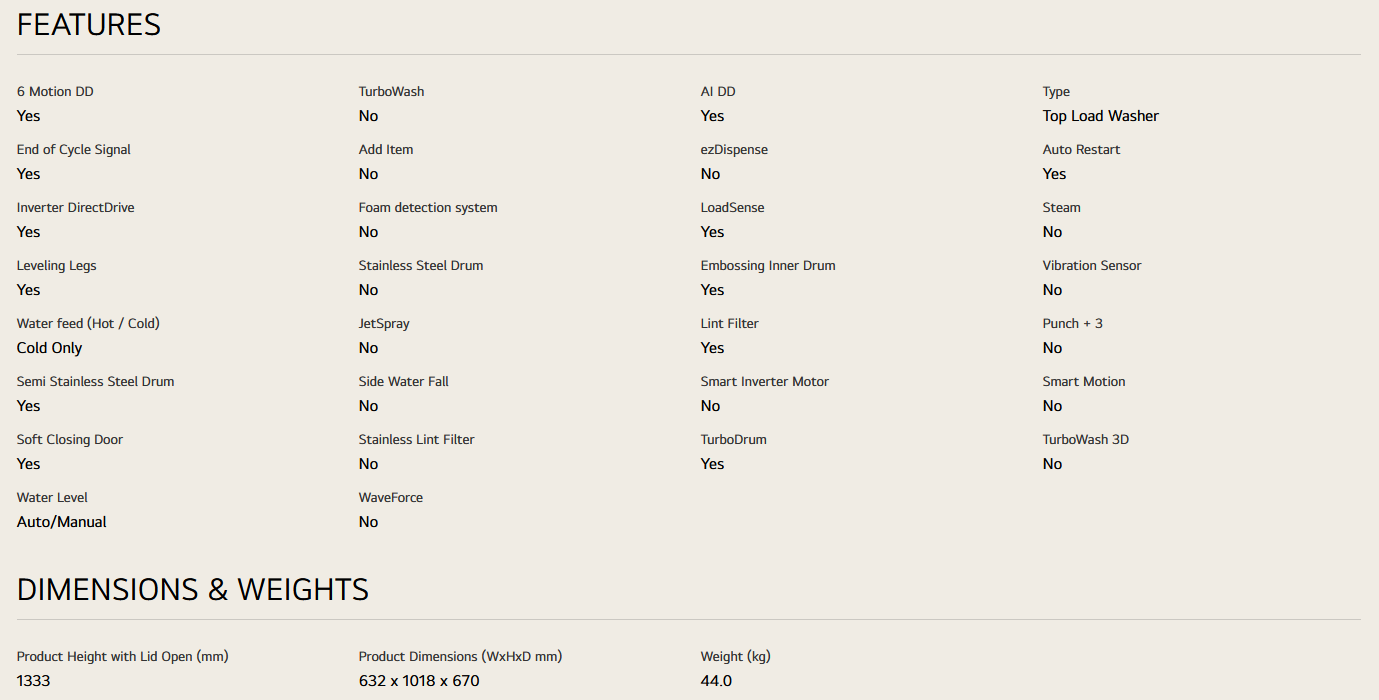 LG TV2515DV3B 15kg Top Load Washer with AI Direct Drive™ and Turbo Drum