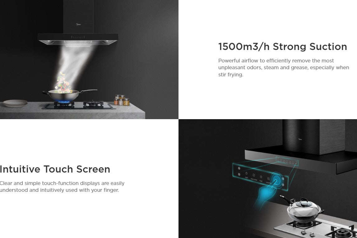 ● Midea 1500m3/hr Premium Cooker Hood MCH-90B88(BK)