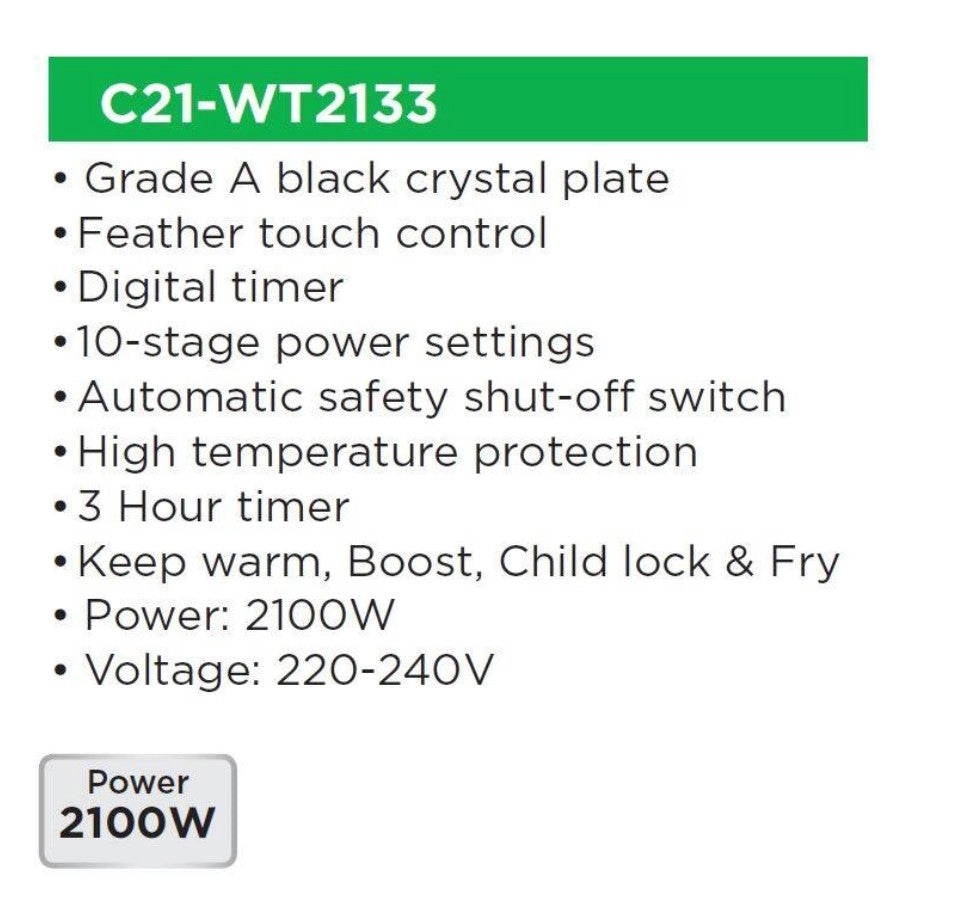Midea C21-WT2133 2100W Feather Touch Control Induction Cooker (Red) C21WT2133