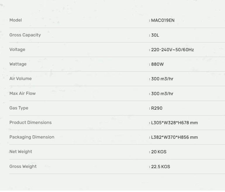 Mistral MAC019EN 30L Portable Air Conditioner Remote