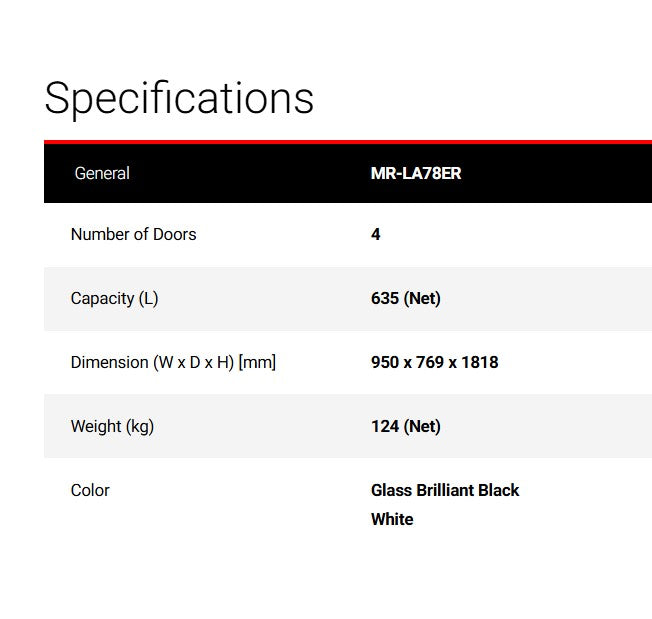 Mitsubishi 635L Net Refrigerator 4 Doors Fridge MR-LA78ER-GWH (White) MRLA78ERGWH