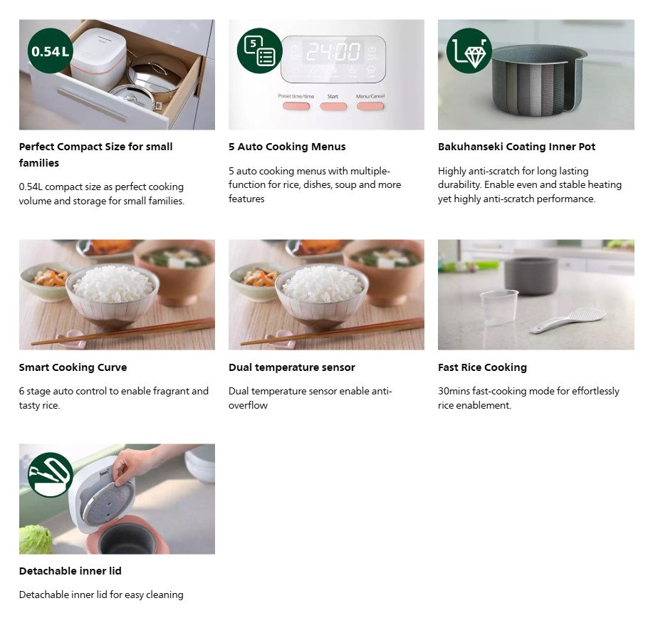 Philips 3000 Series. Cook with perfect compact size for small family with 5 auto menus for effortless cooking of rice, dishes and more.