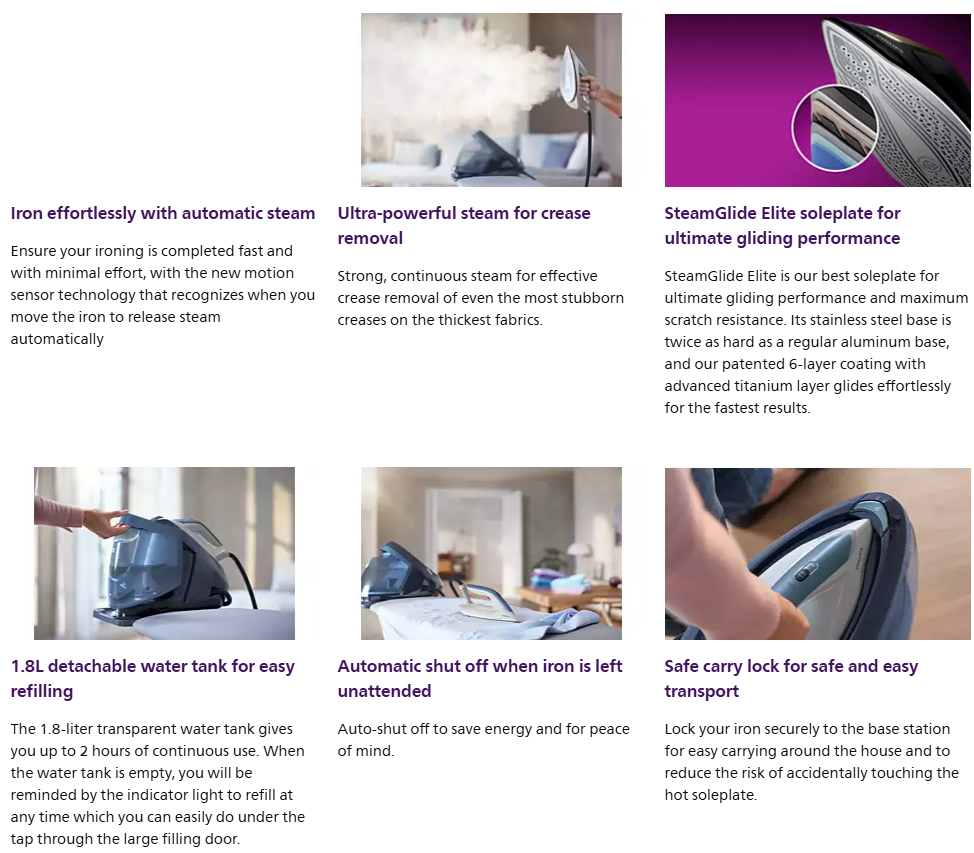 PerfectCare 8000 Series offers effortless ironing with our new motion sensor technology. It allows vertical and horizontal ironing with automatic steam.