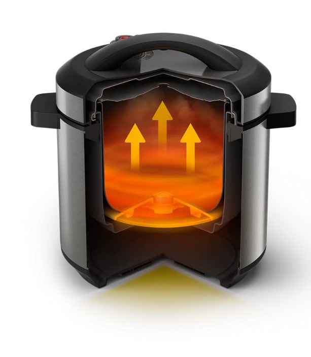 The upgraded power efficiently shortens pre-heat time. Together with the intelligent cooking system, you can slow cook, pressure cook and multi cook delicious meals in one machine with ease.