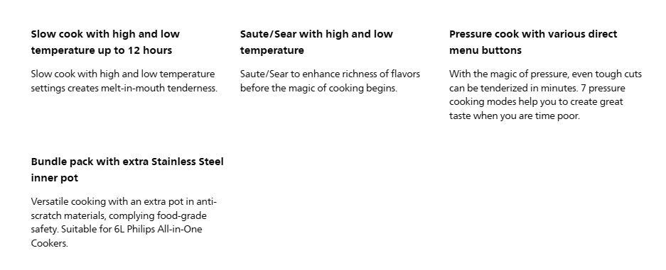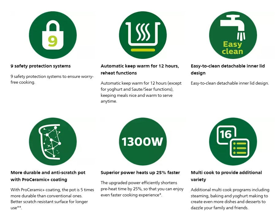 PHILIPS 6L All-in-One Multicooker HD2237/73 Pre-Set Cooking 9 safety protection Nutri Apps Meal Support pressure cooker HD2237