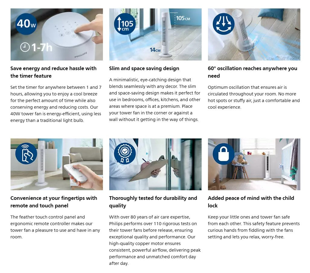 PHILIPS CX5535 Tower Fan 5000 Series CX5535/00 (White) 2230 m3/h