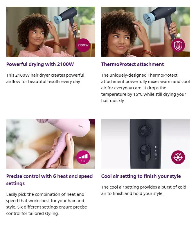 Philips Hair Dryer BHD360 Thermo Protect (2100W) With Difusser BHD360/23