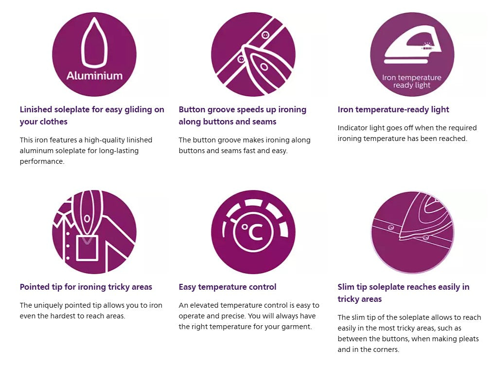 Philips HD1172 Classic Dry Iron (1000 W) HD1172/01 Temp Control Non Stick Soleplate Seterika
