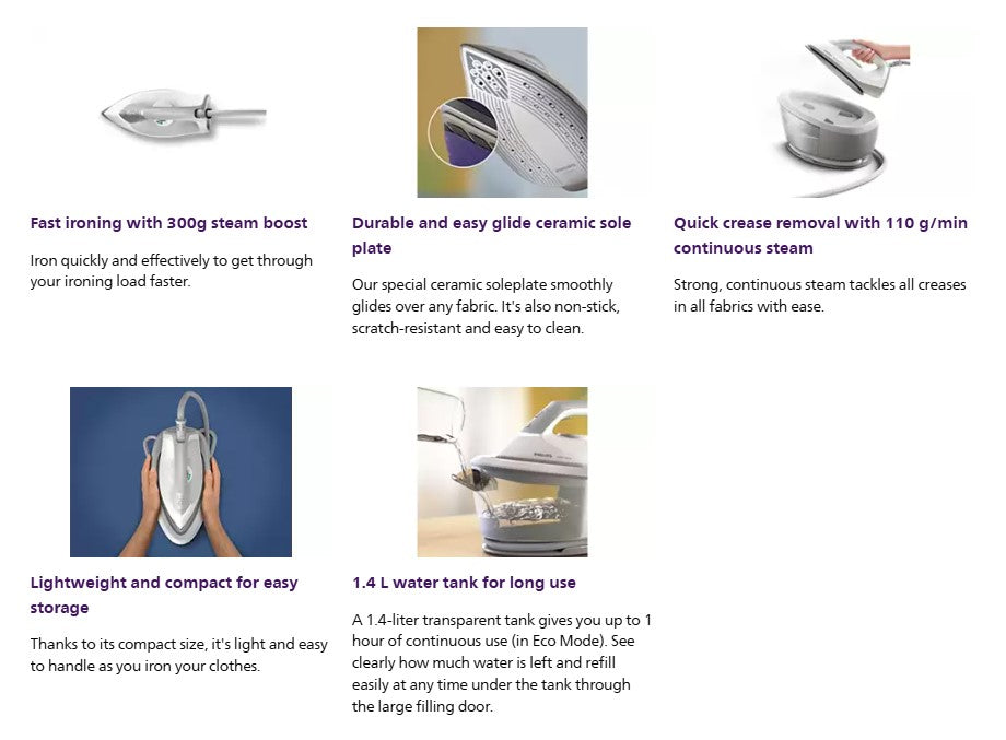 ● Weight of iron + base 2.3 kg