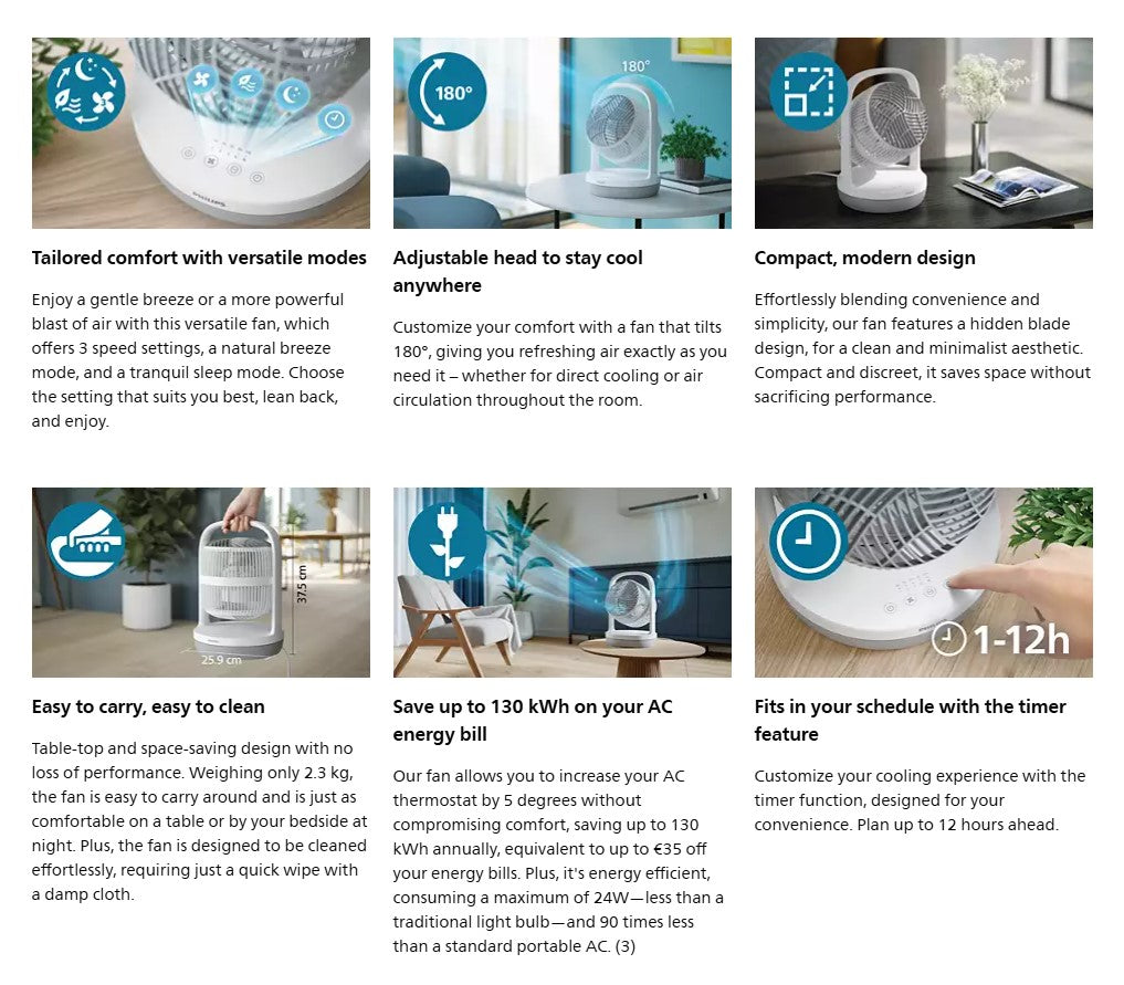 Philips Table Fan 2000 Series CX2050/00 Circulation desk CX2050 24W