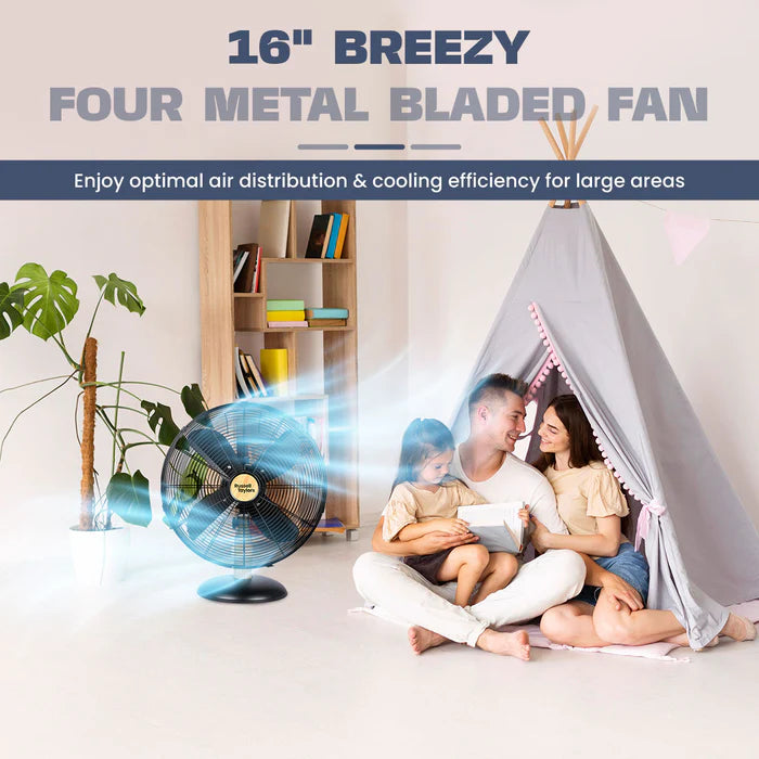 - Cool off any bedroom, office, living room, or outdoor space with our table fan with a 16-inch blade diameter.