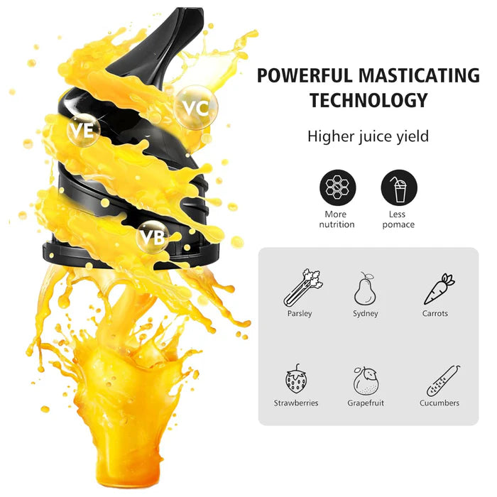 - Wide 80mm feed chute - fits large amounts of fruits and vegetables, while its high torque & low speed motor extracts every last drop of nutrient