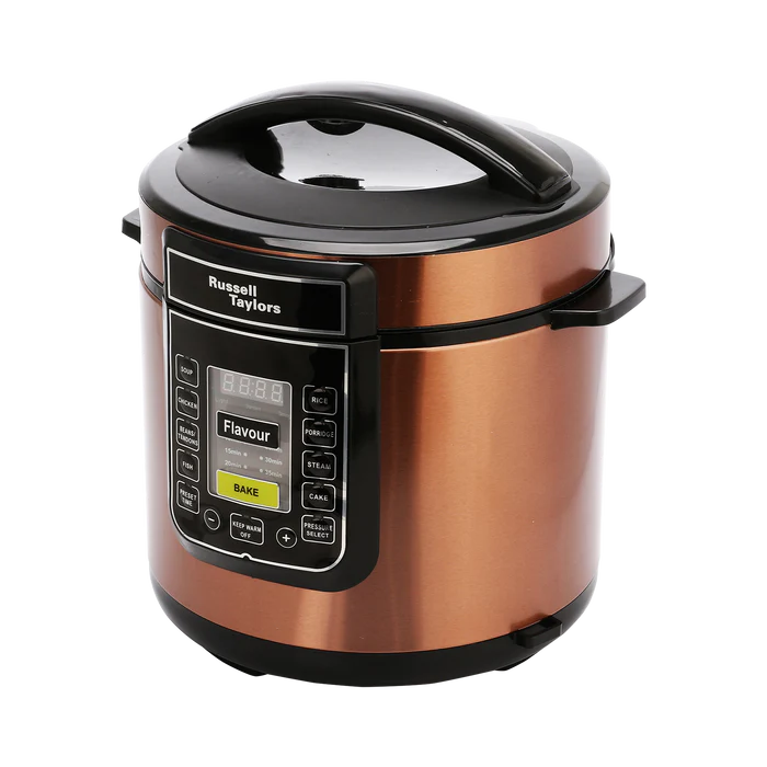- The Russell Taylors 6L Electric Pressure Cooker PC-60 will give you plates and plates mouthwatering delicacies to satisfy your food cravings. With a capacity of 6 litres, you will be able to feed your whole family! The Russell Taylors Electric Pressure Cooker makes it easy to not only cook perfectly but also a diverse range of food such as stew, soup, curry porridge, vegetables and more. With the incredible auto pressure release device to ensure safety during cooking and nutritional keep warm option, you will be enjoying food that are nutritional and healthy.