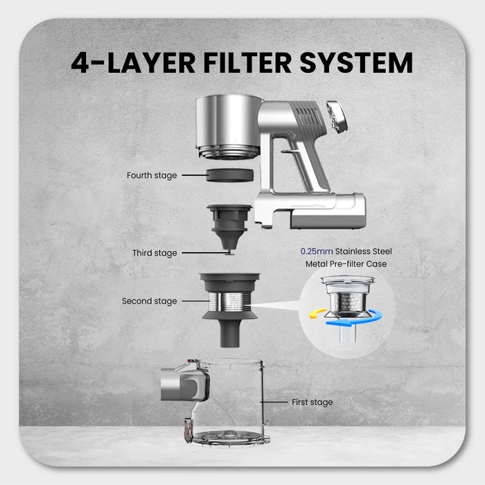 - Eliminate Bacteria & Dust - A 4-stage advanced filtration system is included: cyclone filtration, cylinder filtration, hepa filtration, and sponge filtration. To empty the dirt-filled dust cup, simply twist the dust cup or press the release button.