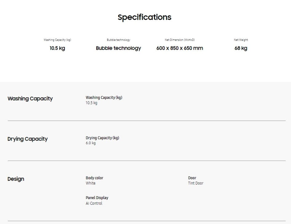 SAMSUNG 10.5KG/ 6KG Washer Dryer WD10T504DBE/FQ White Front Load WD10T504DBE